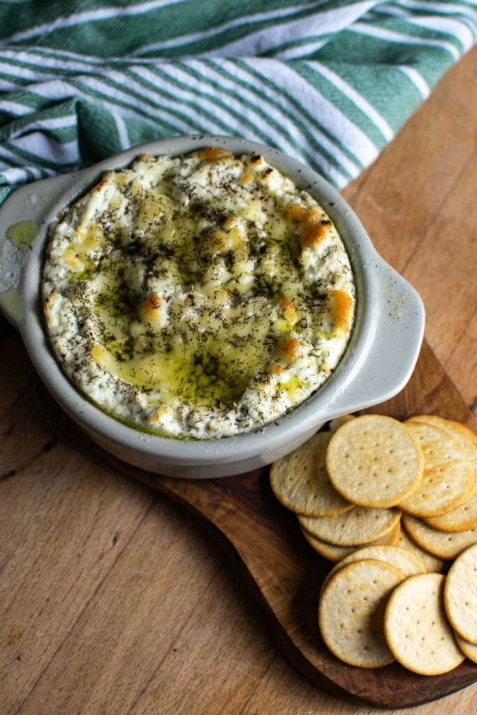 I think you’ll love this dill and lemon baked ricotta dip as it’s so quick and easy to prepare with just a few simple ingredients. It’s perfect for date night at home with a glass of wine. Lovely on a charcuterie board for game day, and just right as a warm dip anytime of year.