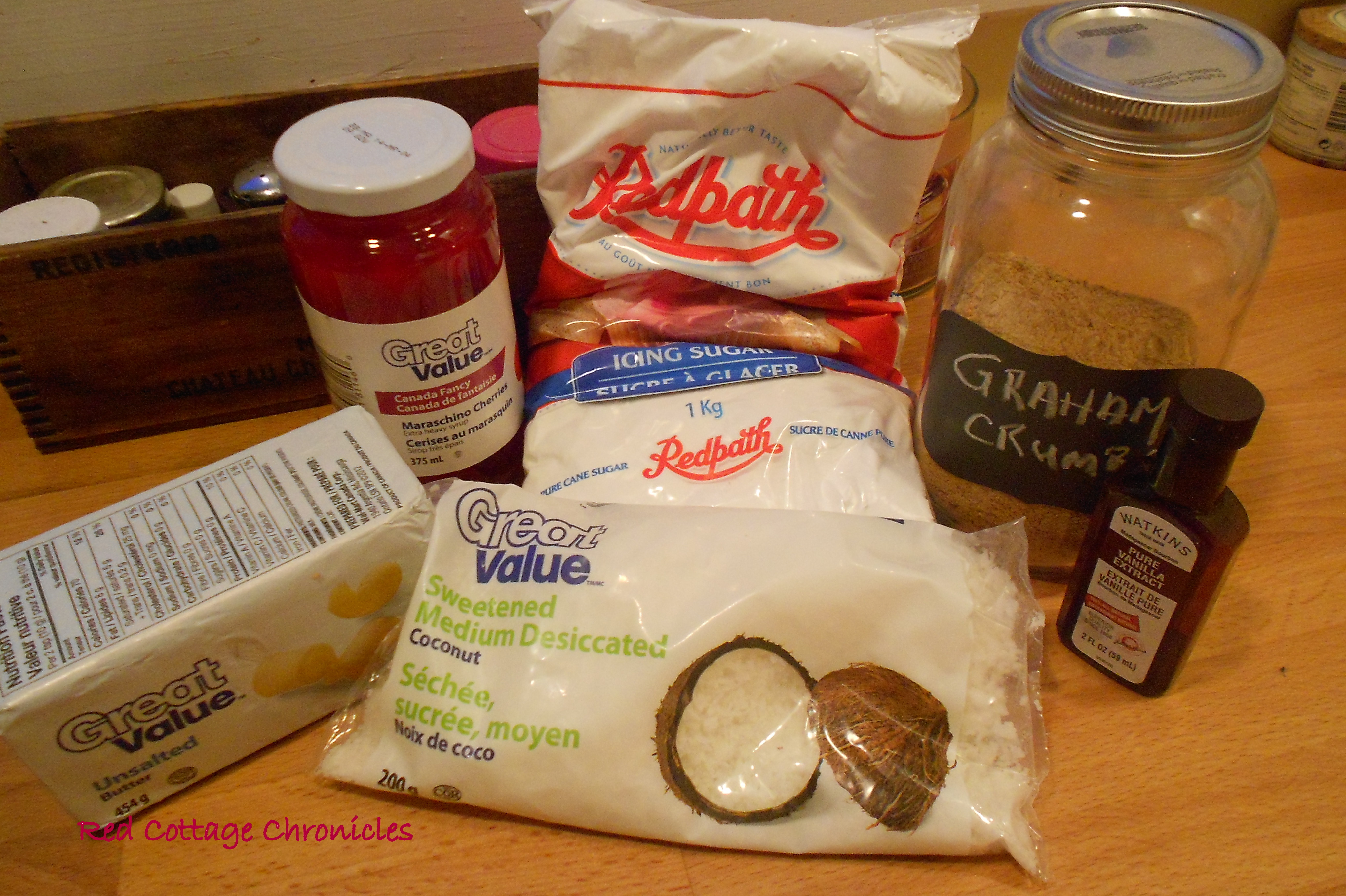 These Cherry Surprises are unassuming, adorable little bundles hiding a surprise inside! Maraschino cherry centre is surrounded by a delicious buttery coconut mixture, and then coated with graham cracker crumbs!